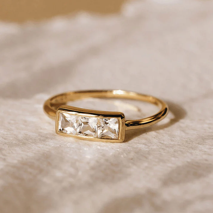 Es una joya elegante y sofisticada que presenta tres piedras preciosas o semipreciosas en su diseño. Este tipo de anillo es conocido por su simbolismo, ya que las tres piedras suelen representar momentos importantes de la vida, como el pasado, el presente y el futuro, o pueden tener un significado personal para quien lo lleva.